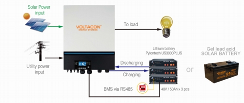 This inverter is classified as off-grid but it is suitable even if you are connected to a public grid (single or three-phase). Due to its simplicity, more solar enthusiasts prefer the 8kW inverter to supply their entire home with green energy from the sun. There is no need for complicated paperwork and long-term contracts with the DNO (grid operator). The off-grid inverters do not feed energy back to the grid and for that reason, you do not need a license to connect one or more to your property.